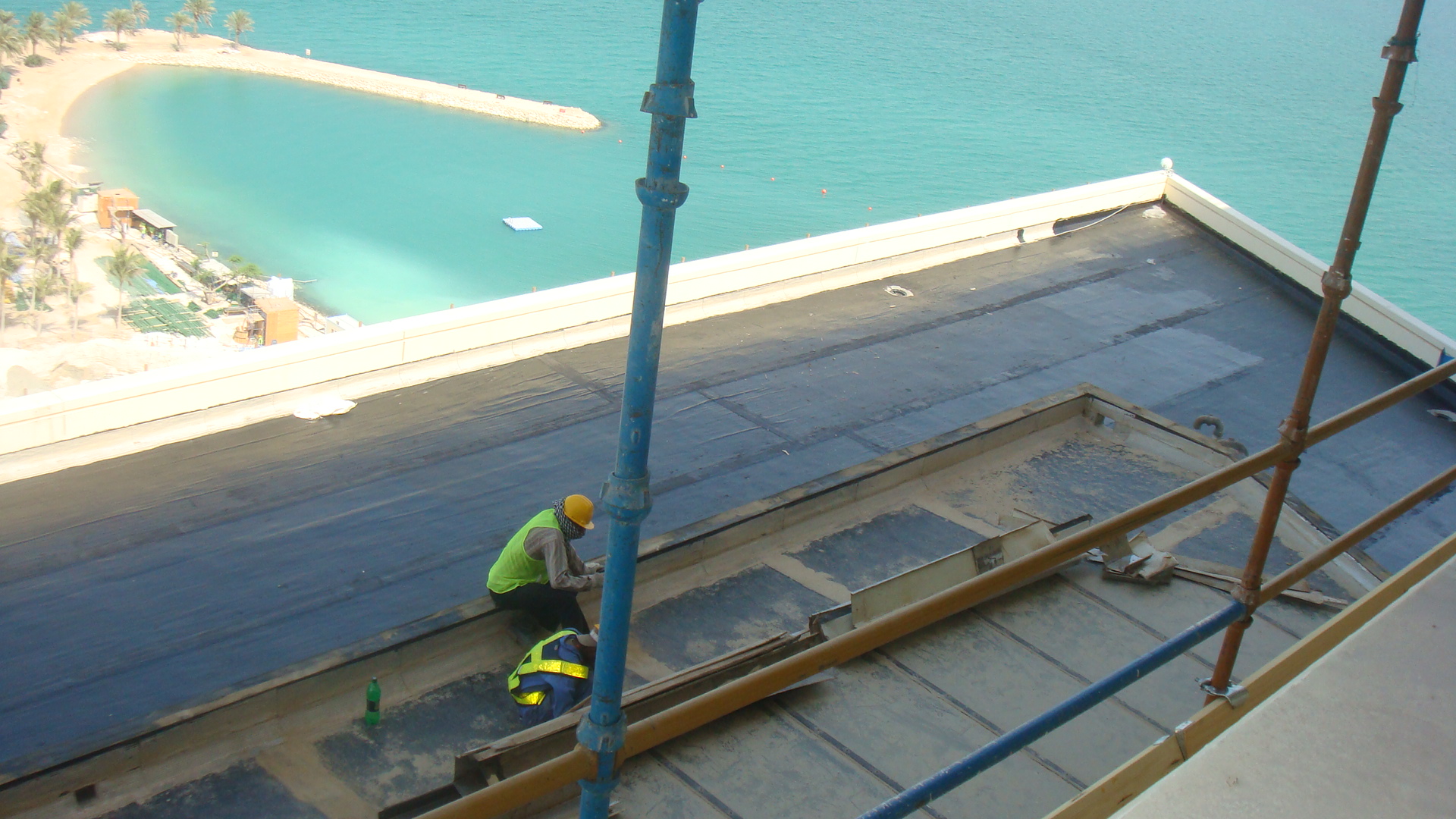 The scope of works included cementitious waterproofing for swimming pool using SikaTop Seal 107, repairing of existing bituminous roof membrane and expansion joint treatment using Sikadur Combiflex SG Tapes.