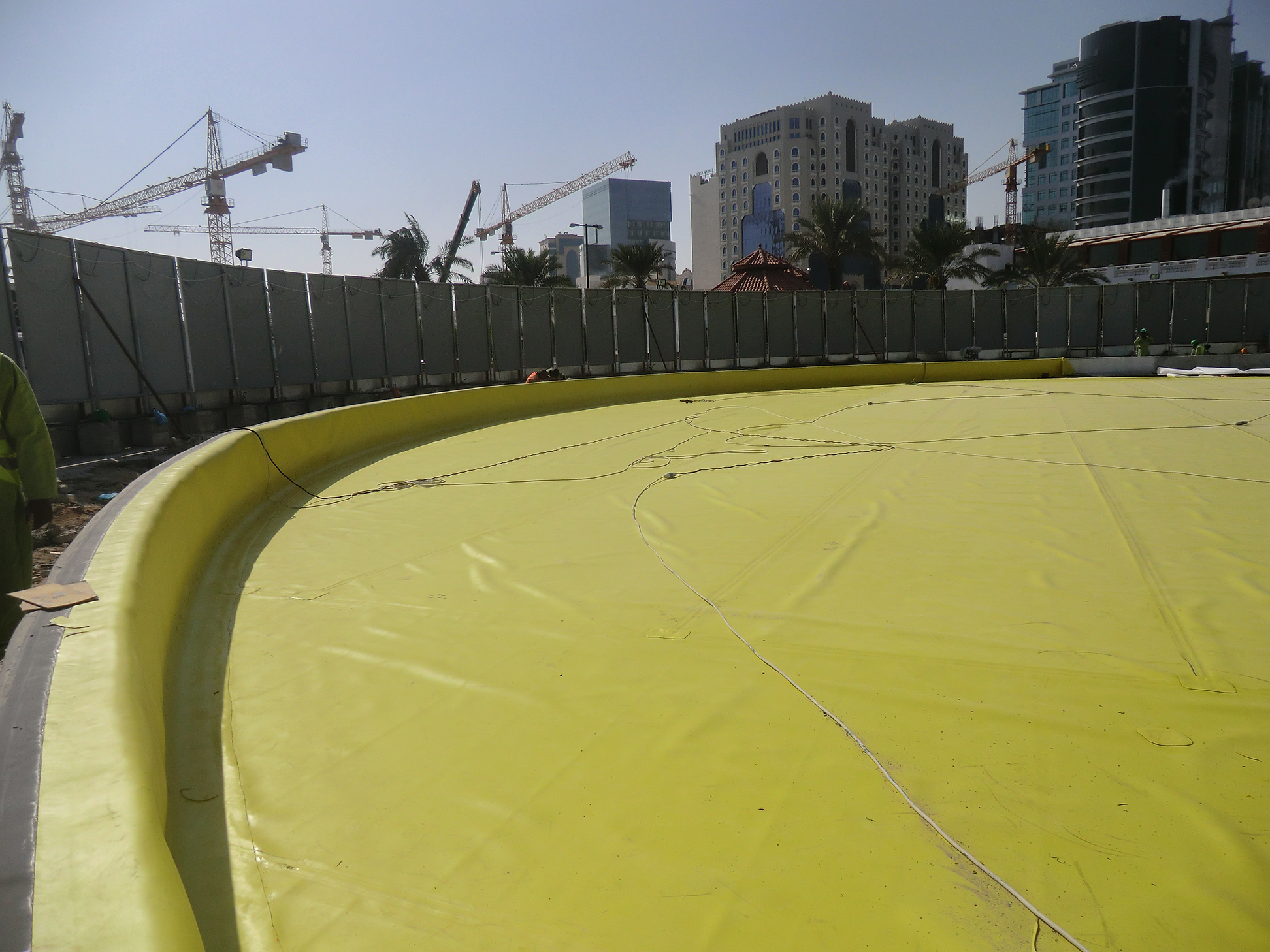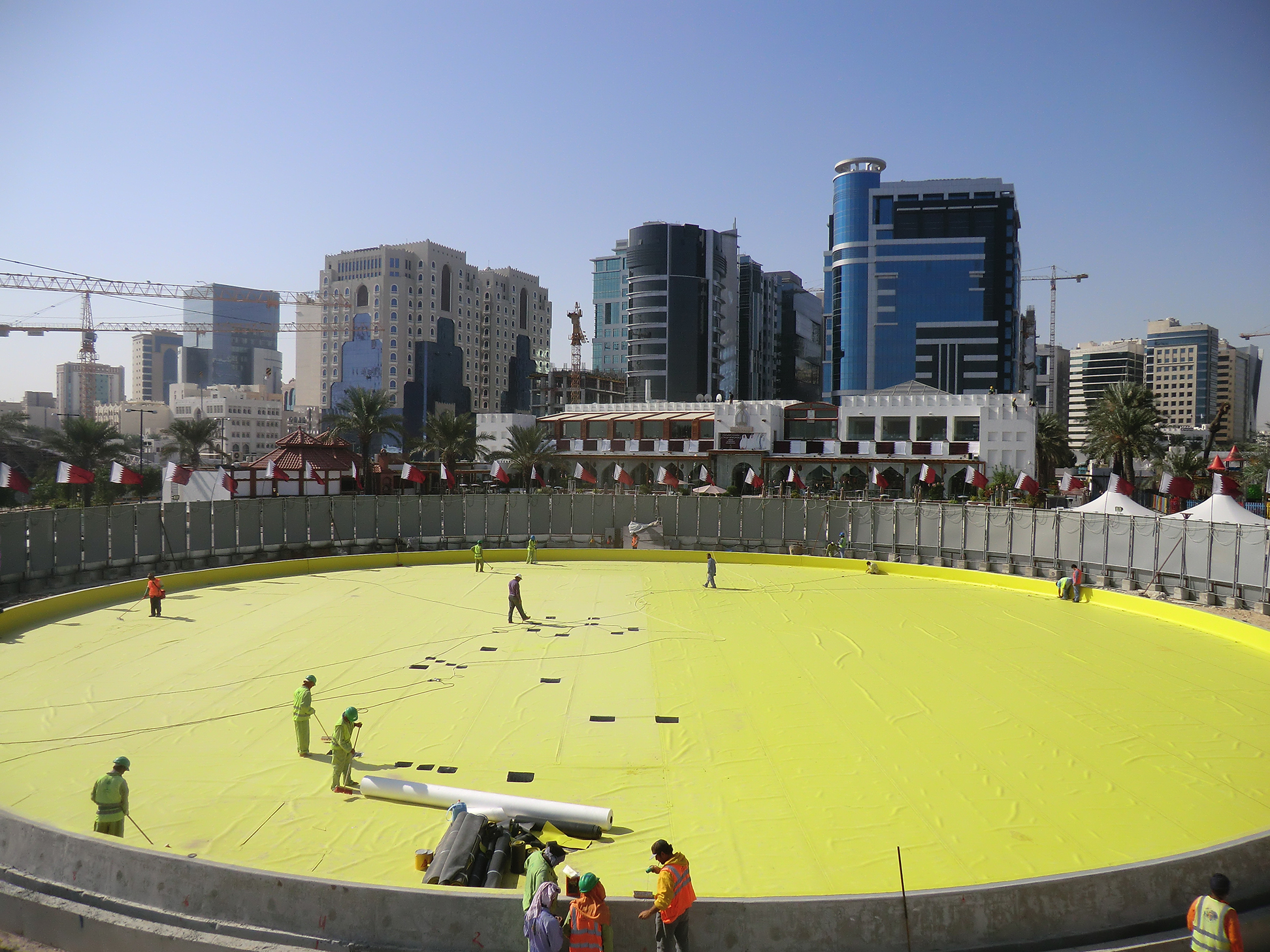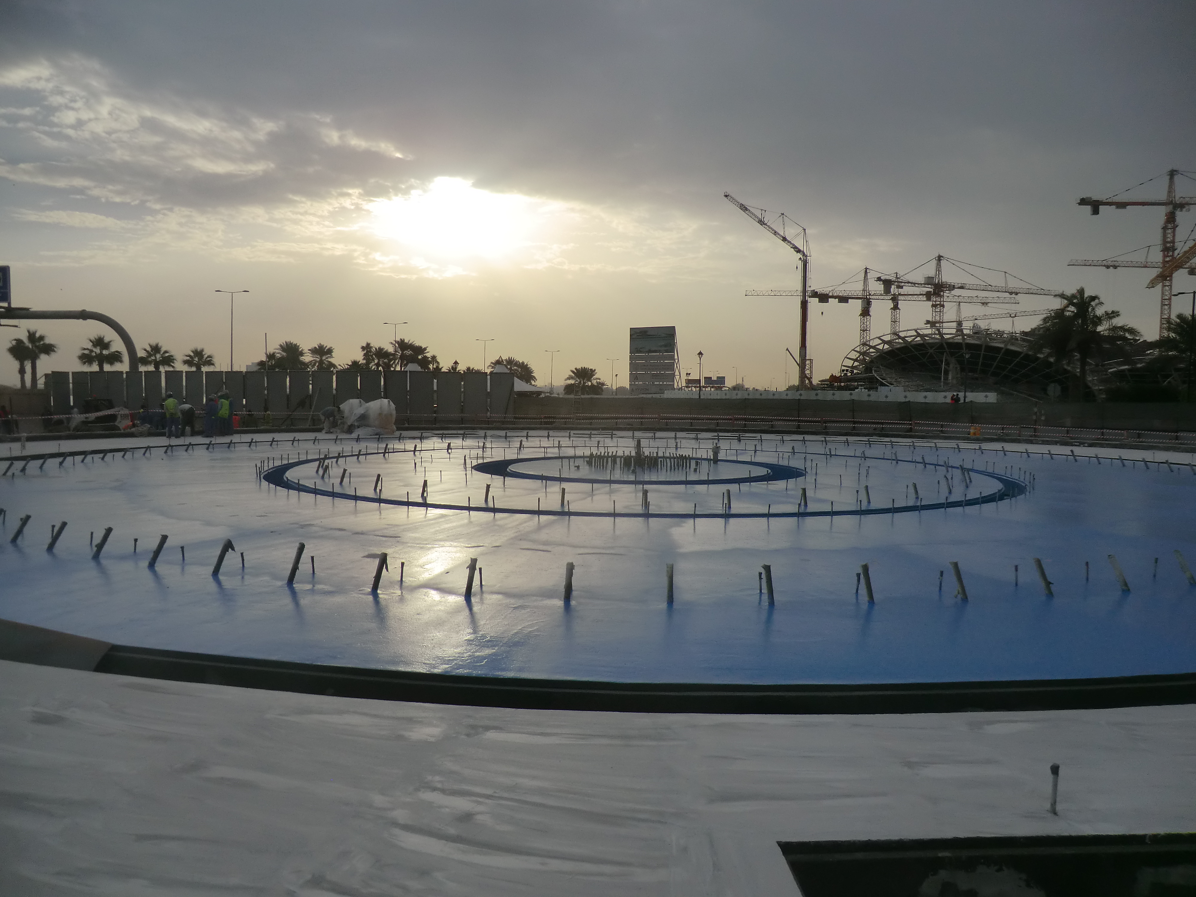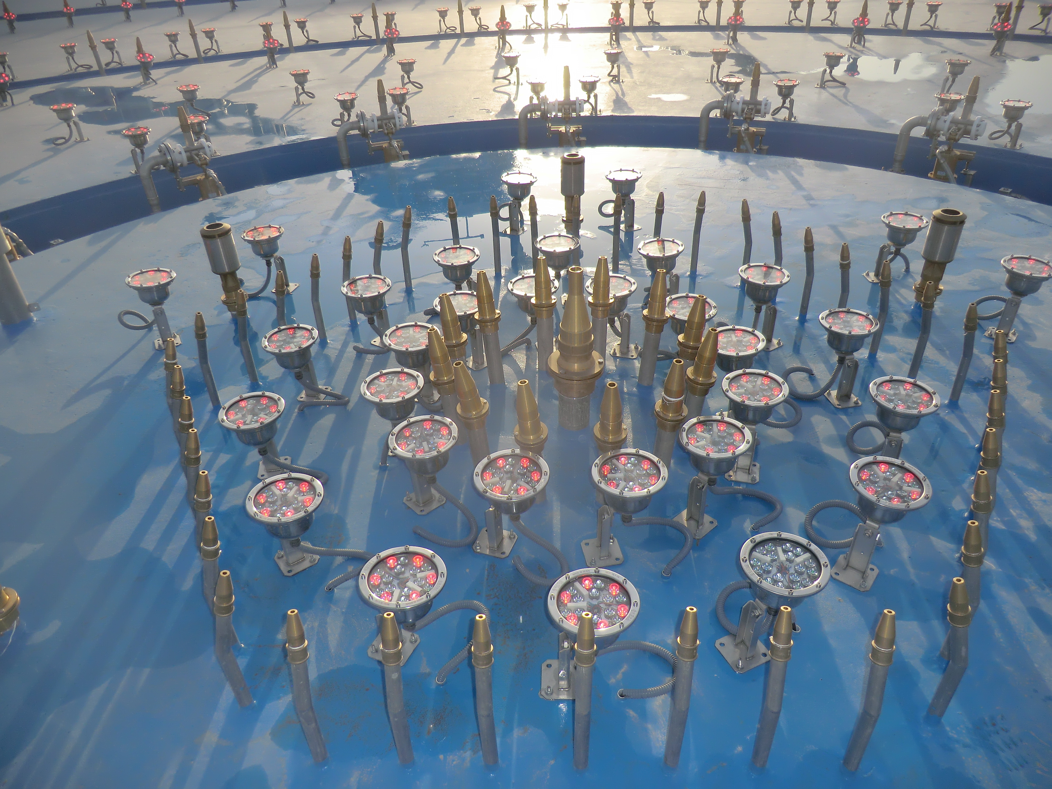 Complete waterproofing for the music fountain includes the following,